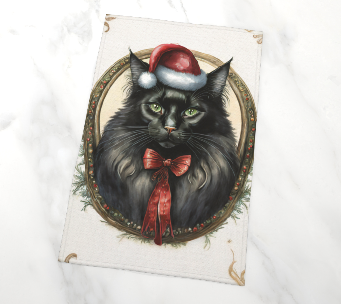 🎄🐾 Elevate your holiday kitchen decor with the Black Maine Coon Cat Christmas Tea Towel! This stylish tea towel is the perfect blend of festive charm and everyday functionality. Ideal for cat lovers and those who enjoy adding a personal touch to their kitchen!