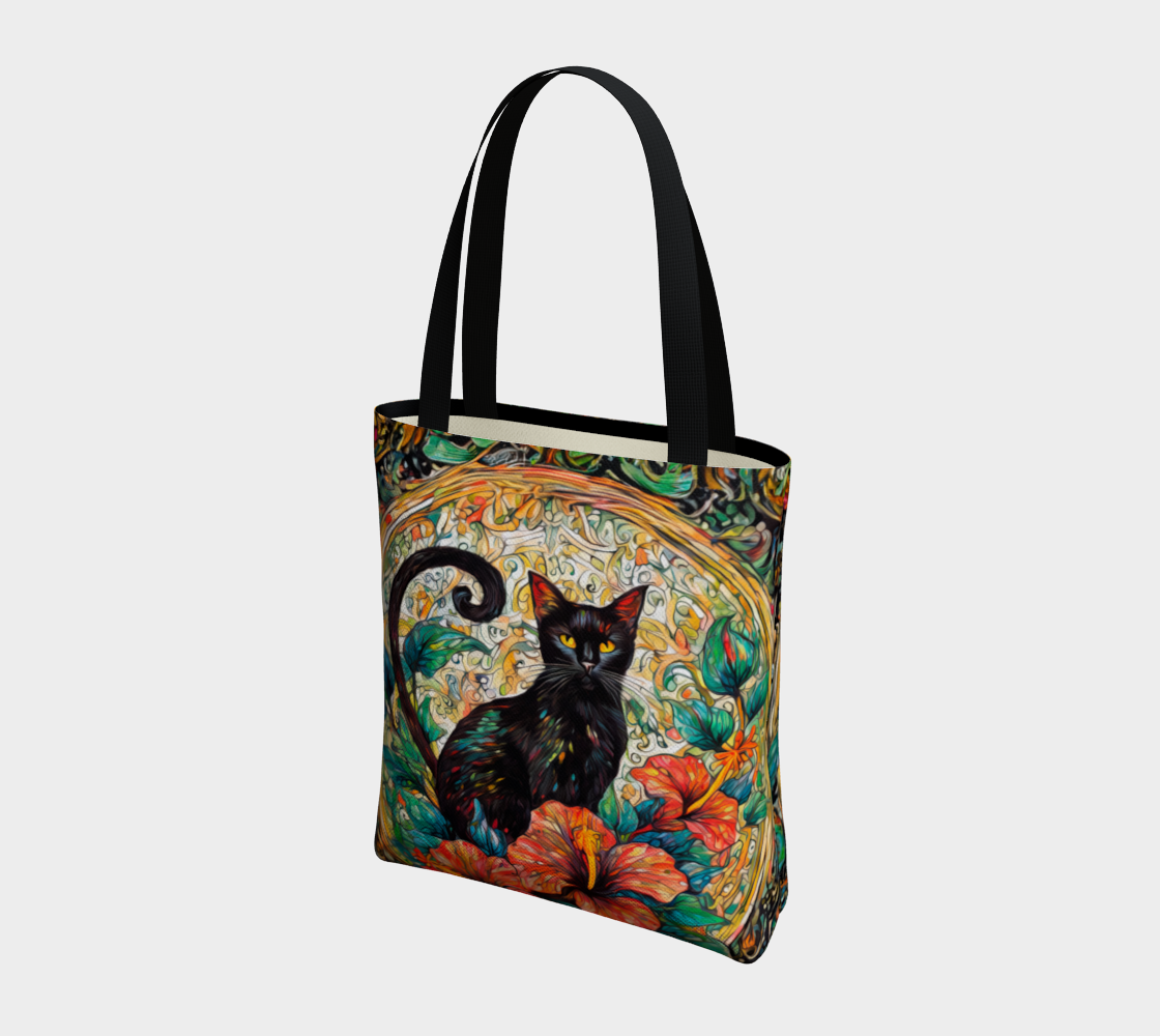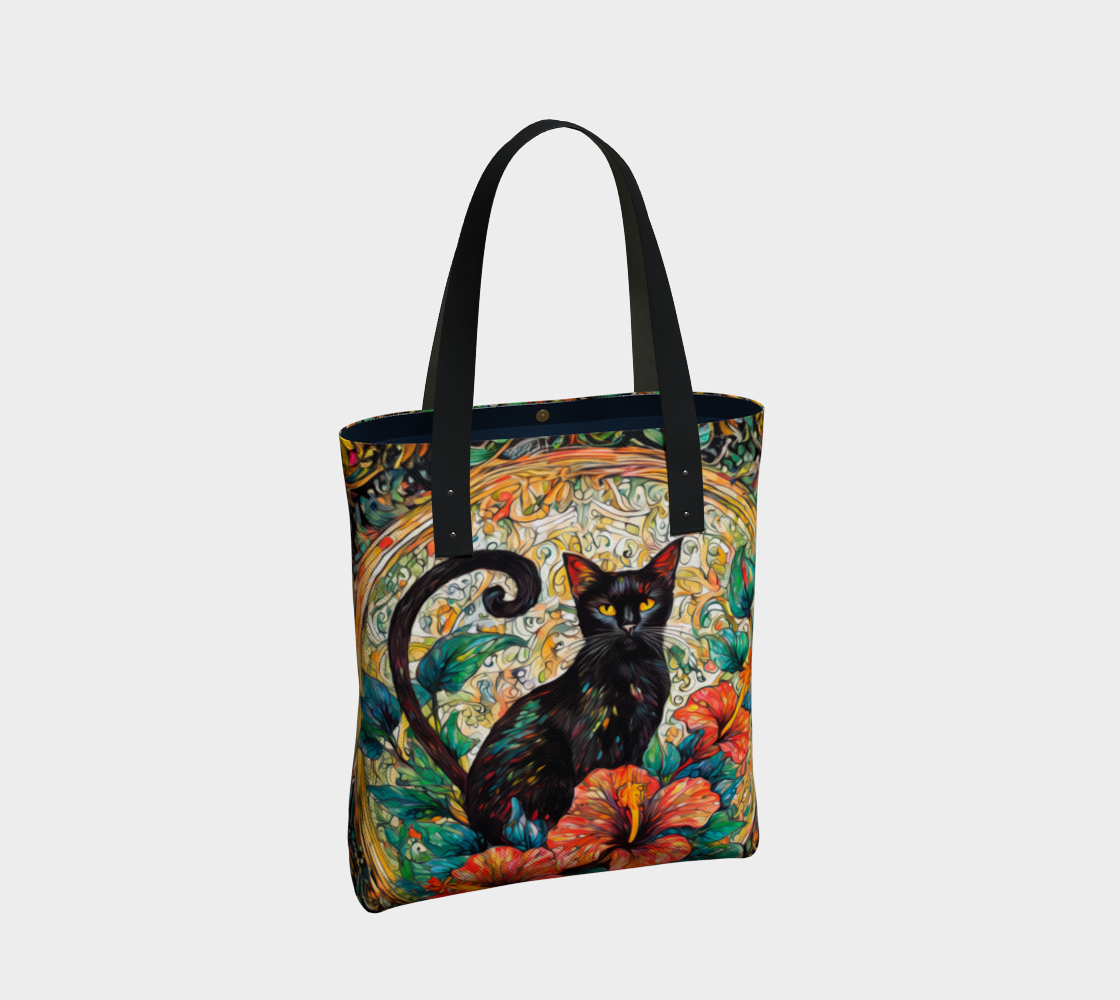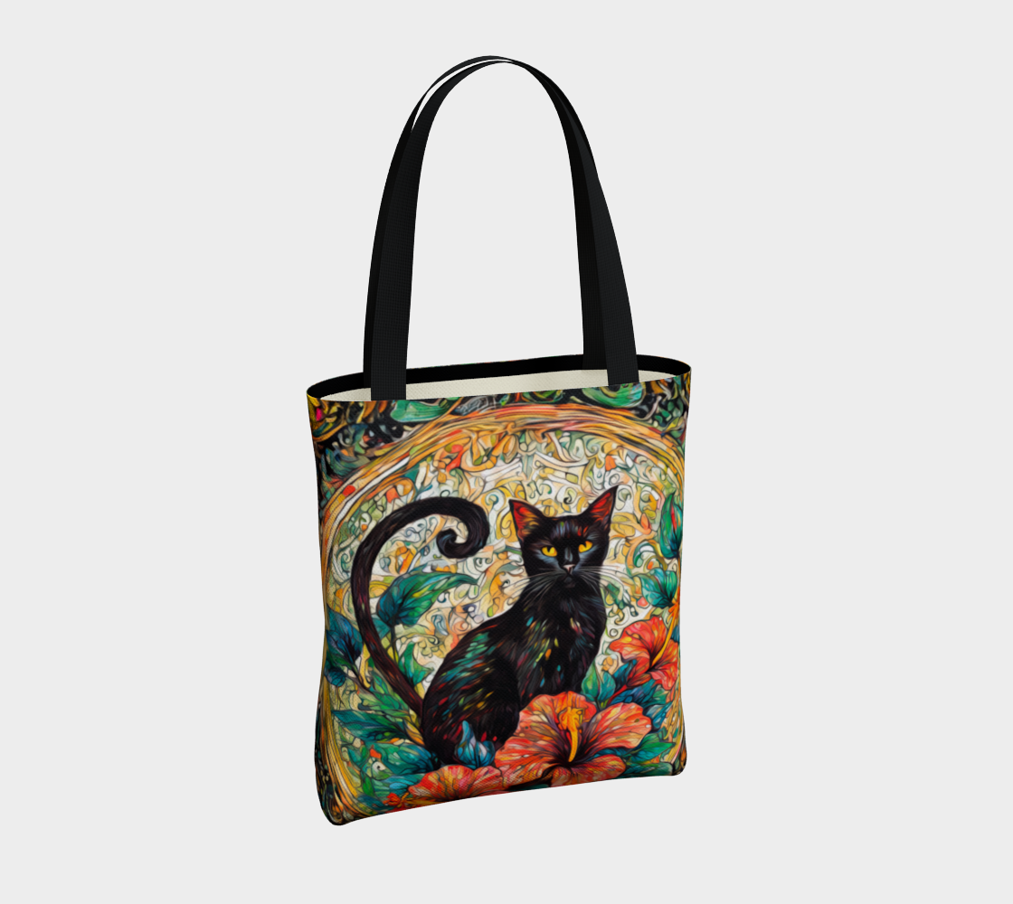SHS Black Cat and Hibiscus Tote Bag