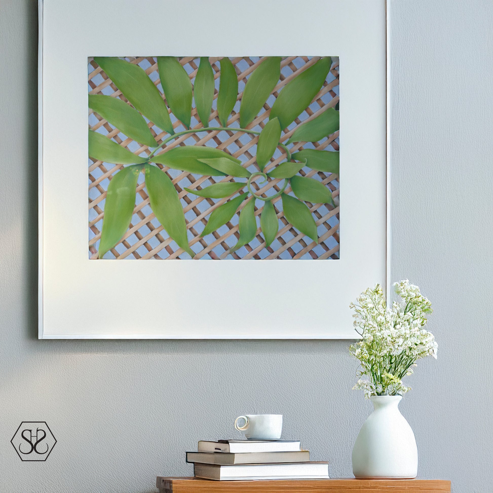 Measuring 58 x 78 cm framed (not in the frame in the image but similar), this piece brings a touch of natural elegance and tranquillity to any space. Imagine this stunning artwork gracing your walls, adding a subtle pop of colour and a sense of calm contemplation.