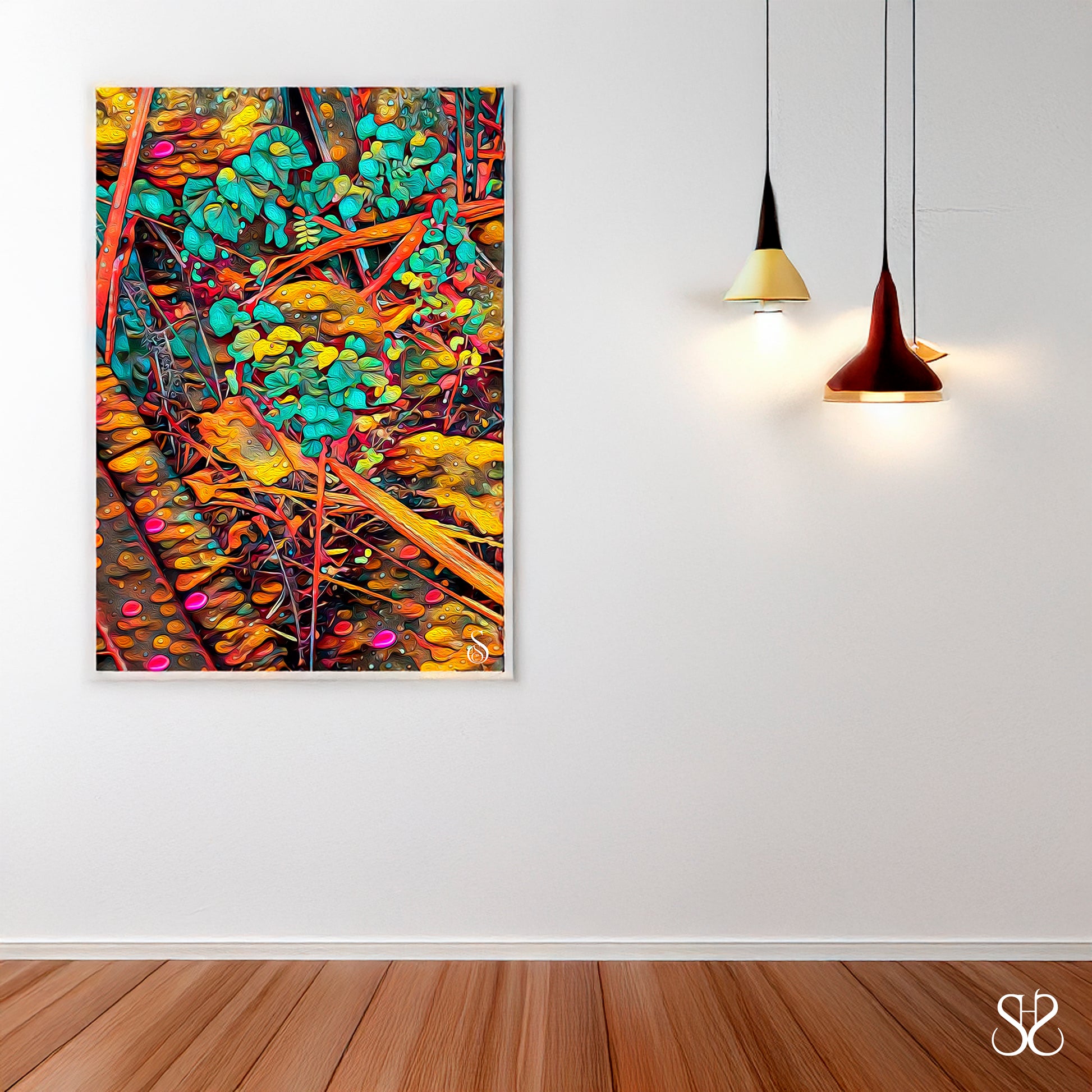 Escape to the lush heart of the rainforest with 'Undergrowth Pink Glow' a captivating digital mixed-media artwork inspired by the Cairns Botanic Gardens. This limited edition print, one of only 500, captures the intricate beauty and vibrant life teeming beneath the canopy.